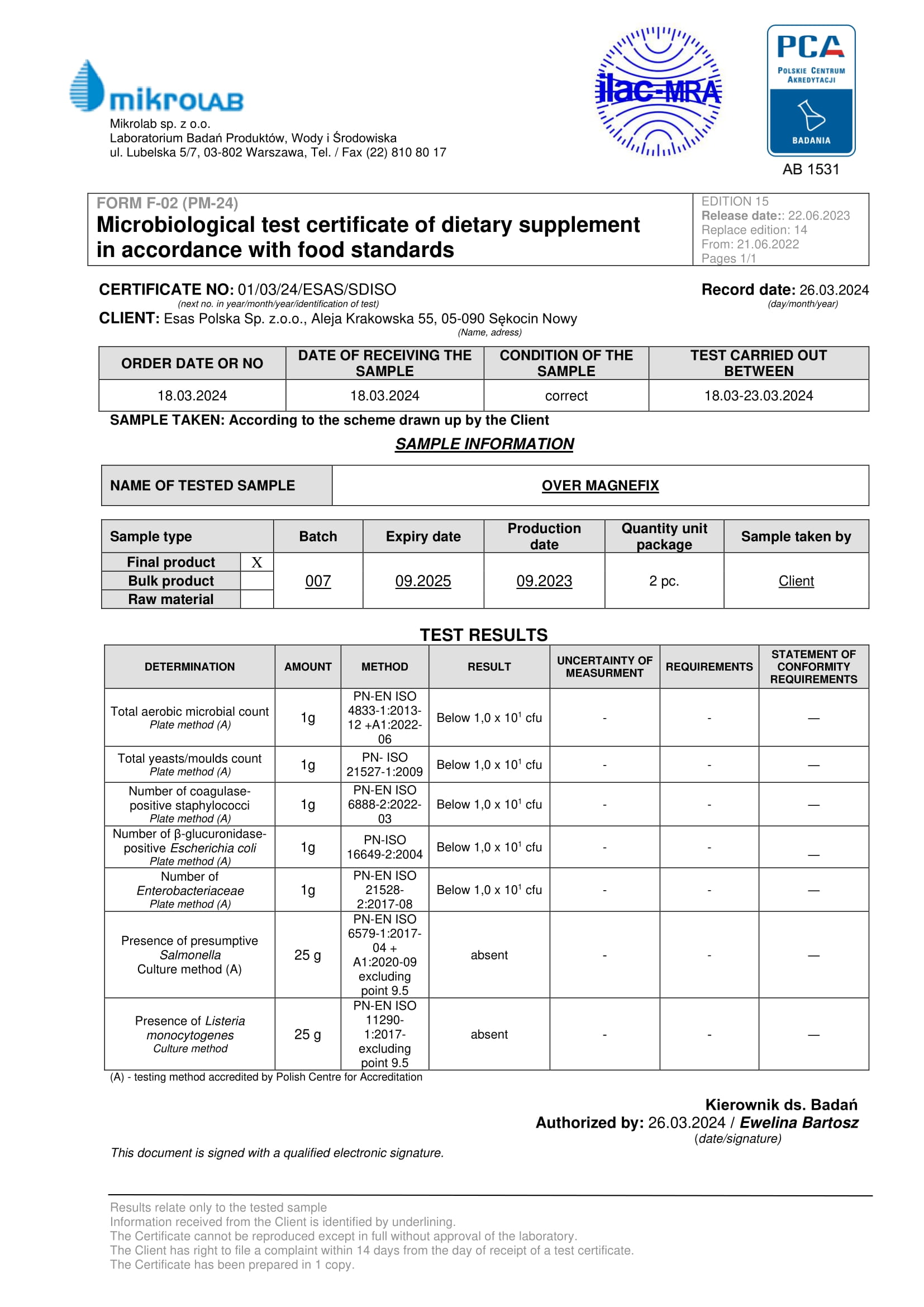Dr. Over markalı ürünlerimiz, Avrupa Birliği standartlarına uygunluk süreçlerini başarıyla tamamlamış ve ESAS Polska şirketi aracılığıyla Avrupa pazarına resmi olarak giriş yapmıştır.